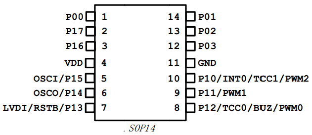²1K*14 程序存儲器空空間(OTP),燒寫 1 次