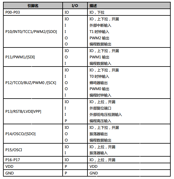 ²8 位 P1 端口,P13 為為開漏 IO 口(編程高壓 VPP 復用)